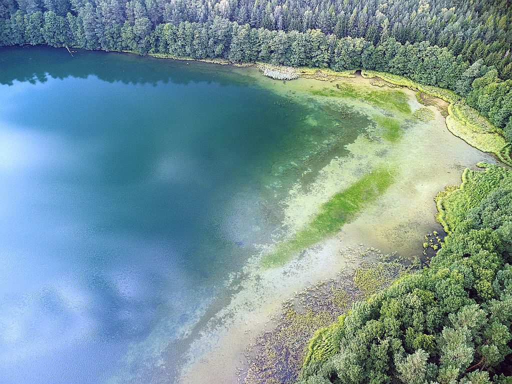 Brzegi jeziora na ogół wolne są od wodorostów.