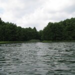 Same brzegi akwenu wolne są od wodorostów, miejscami porasta je jedynie pasmo trzcin.