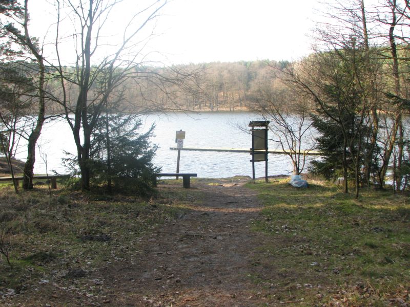 Od południowego wschodu do zbiornika przylegają miejscami podmokłe łąki.