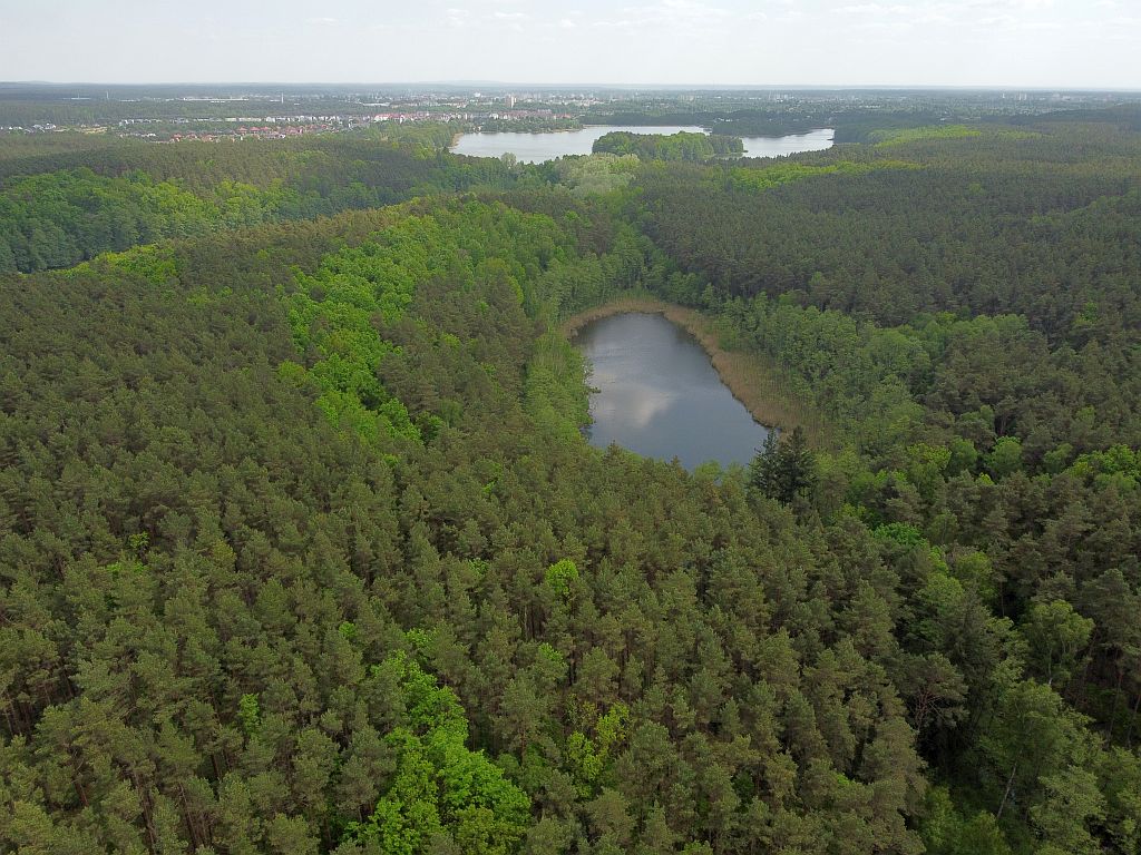 Pas nadbrzeżny po zachodniej stronie Jeziora Rudnickiego porasta las sosnowo-dębowy.